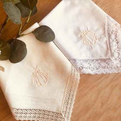 En color blanco>>Pañuelo de Bautizo o con la concha bautismal bordada >>Pañuelo de Bautizo bordado