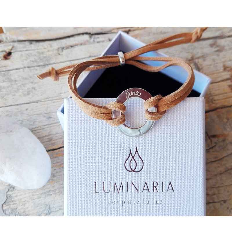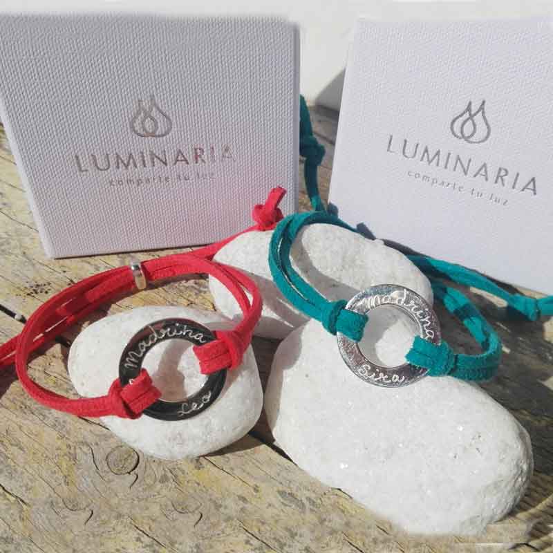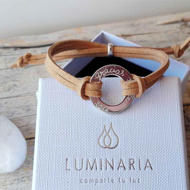 Lleva en la parte frontal dos textos grabados a mano, a modo de ejemplo.podemos grabar a mano las palabras que tú elijas.