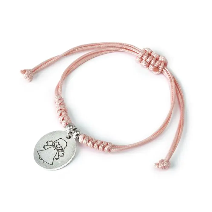 Pulsera con charm Angelito, para elegir entre tres colores que os ofrecemos. Consta de un Charm de Ángel de la guarda montado sobre cinta de algodón/seda brillante trenzado, totalmente ajustable a todas las medidas de muñecas.
