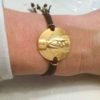 La de acabado en baño de oro, con antelina marrón oscura y remates en baño de oro