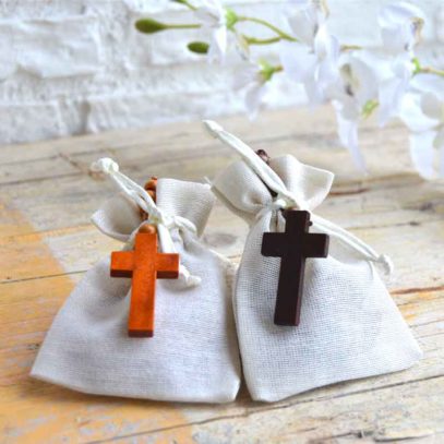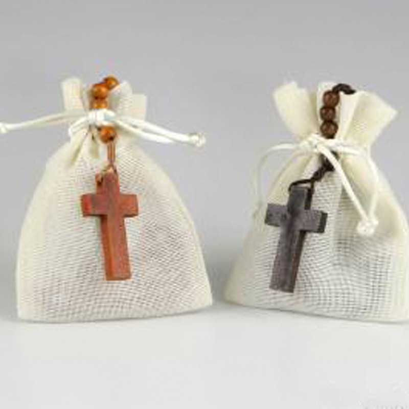 Rosario de madera con un saquito de tela de yute, muy apropiado para poder llevar con uno mismo. Lo encontramos muy bonito y sencillo para regalar como detalle, a un Religioso, Catequista, o amigo que lo rece. Nos gusta como alternativa más masculina al rosario de perlitas.
