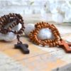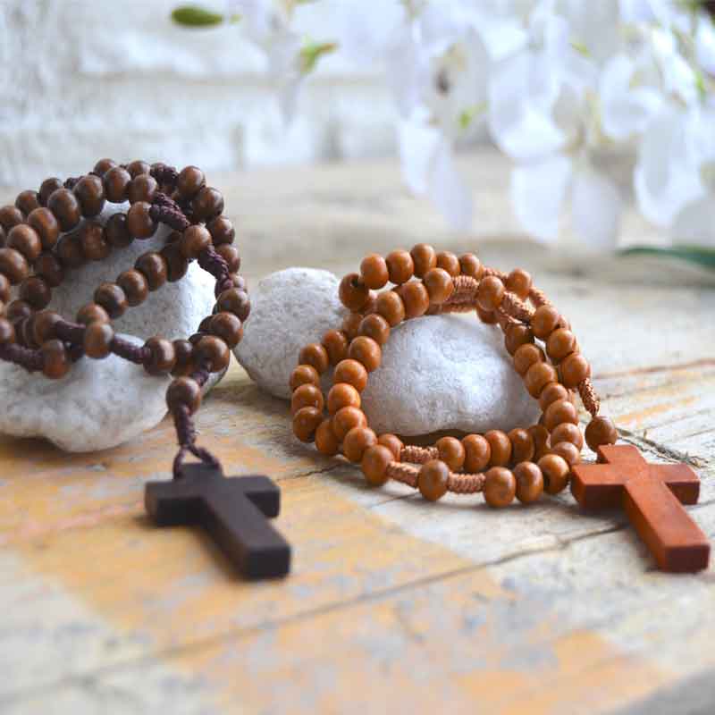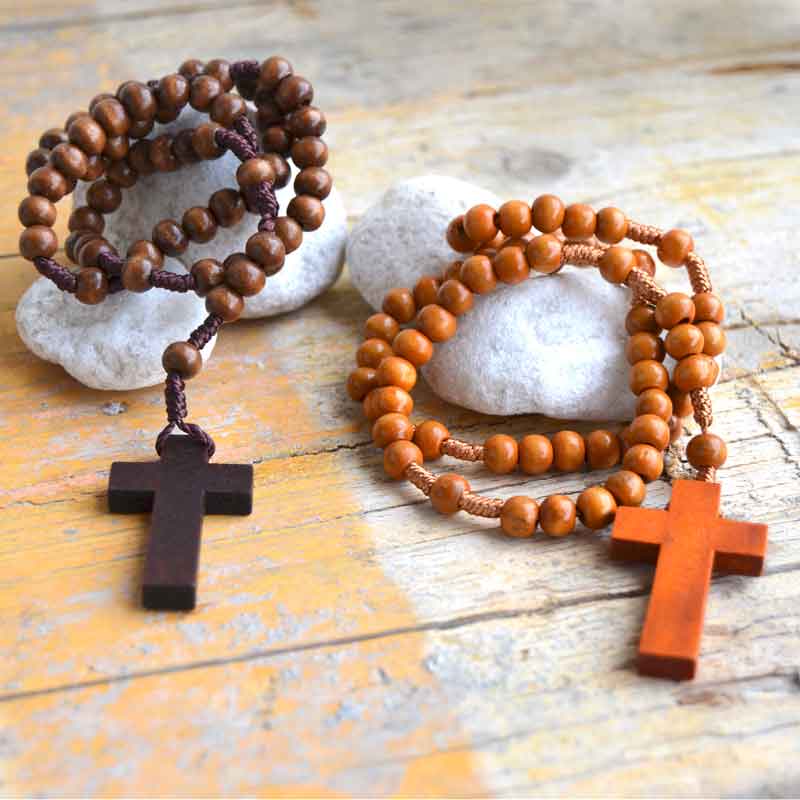 Rosario sencillo hecho en madera. Apenas ocupa espacio en el bolsillo para poder llevarlo contigo siempre.