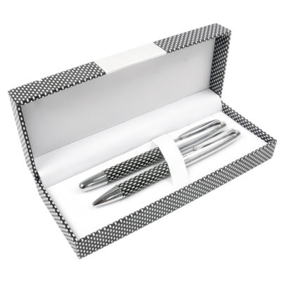 Set de Bolígrafo y Roller Venecia, presentados en estuche de regalo a juego con la decoración estampada de las piezas. Hacen de este estuche un regalo perfecto para una o un catequista, religiosa/o, una amiga sin más. Presentado en dos colores, para ser apto de regalo tanto para hombre como mujer.