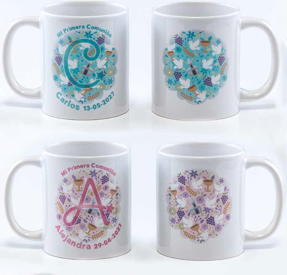 Elige el modelo con el color que más te guste y te lo enviamos personalizado con la inicial del nombre del niño o niña que comulga, y su nombre y la fecha de su Primera Comunión.