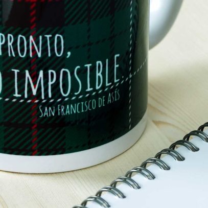 Qué chula es esta Taza «San Francisco de Asís» de cerámica. Su texto ¿verdad que nos anima a seguir con nuestros proyectos? Sí, y con todos esos propósitos que nos hacemos una y otra vez, y que cuesta cumplir… Desde aquí, sabemos bien que todo cuesta, y te queremos dar todo nuestro ánimo.