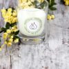 Vela aromática artesanal perfumada, en vaso cónico de vidrio de alta resistencia, con cera blanca y mecha. Duración 20 horas