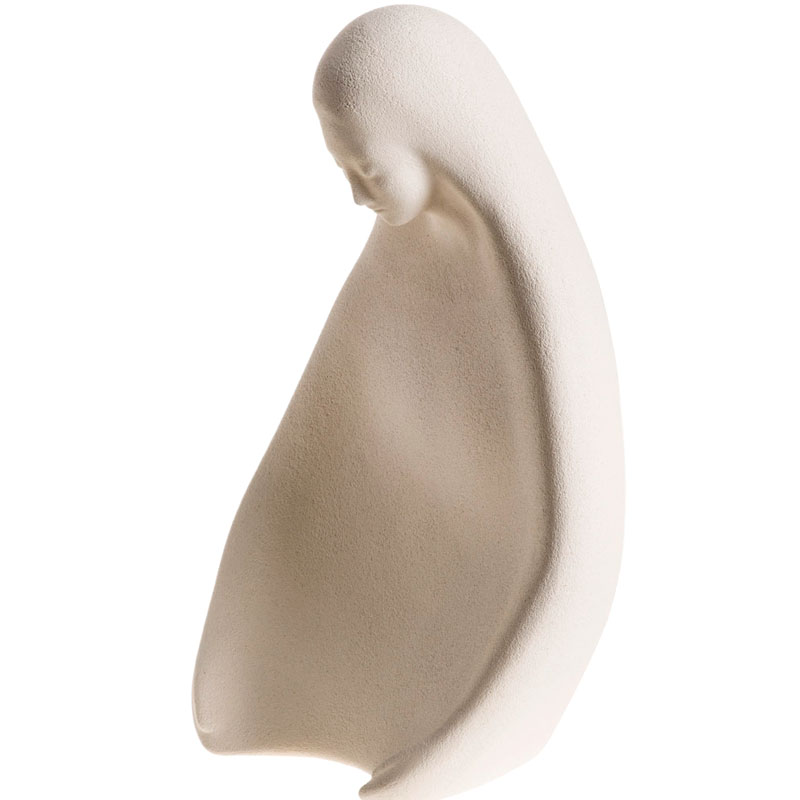 Esta delicada escultura de la Virgen Madre de la Acogida está realizada en arcilla refractaria, y moldeada a mano una a una. Precioso diseño italiano, y con certificado de procedencia y calidad.